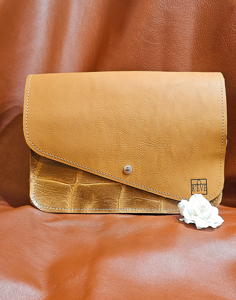 Ce sac à main en cuir véritable est une création artisanale unique, entièrement réalisée à la main dans mon atelier de Draguignan. Avec son rabat en cuir lisse camel et sa touche de style “Girafe” il incarne l’alliance parfaite entre élégance et originalité.