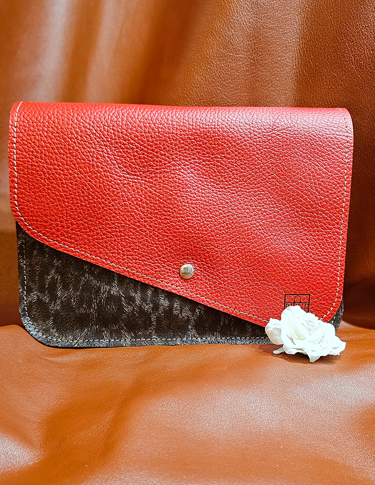 Ce sac à main en cuir véritable est une création artisanale unique, entièrement réalisée à la main dans mon atelier de Draguignan. Avec son rabat en cuir grainé rouge et sa touche de style Léopard” il incarne l’alliance parfaite entre élégance et originalité.